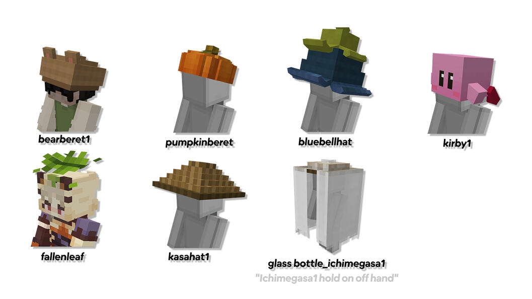 ikuyuk's hats is a wearable cit pack for minecraft java. made by ikuyuk on 1/07/22. use it along side with mizuno's16craft.